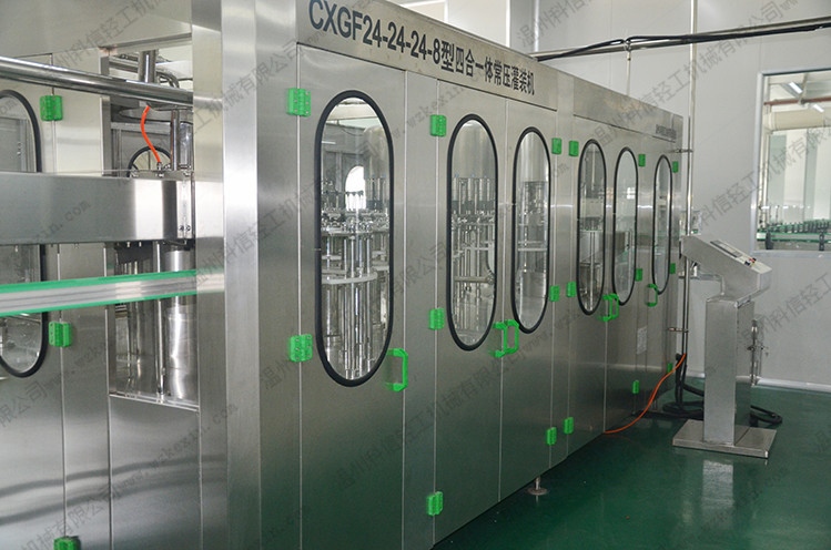 三合一機(jī)集沖洗、灌裝、封蓋于一體,是以國(guó)外先進(jìn)技術(shù)為基礎(chǔ),根據(jù)茶、果汁、等飲品的灌裝工藝要求研制而成的。灌裝溫度一般在82-85度左右的液體。